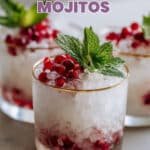 A refreshing and tropical twist on the classic mojito, the White Christmas Mojito combines zesty lime, fresh mint, and creamy coconut with a splash of sparkling water and festive pomegranate arils for a delightful holiday cocktail.